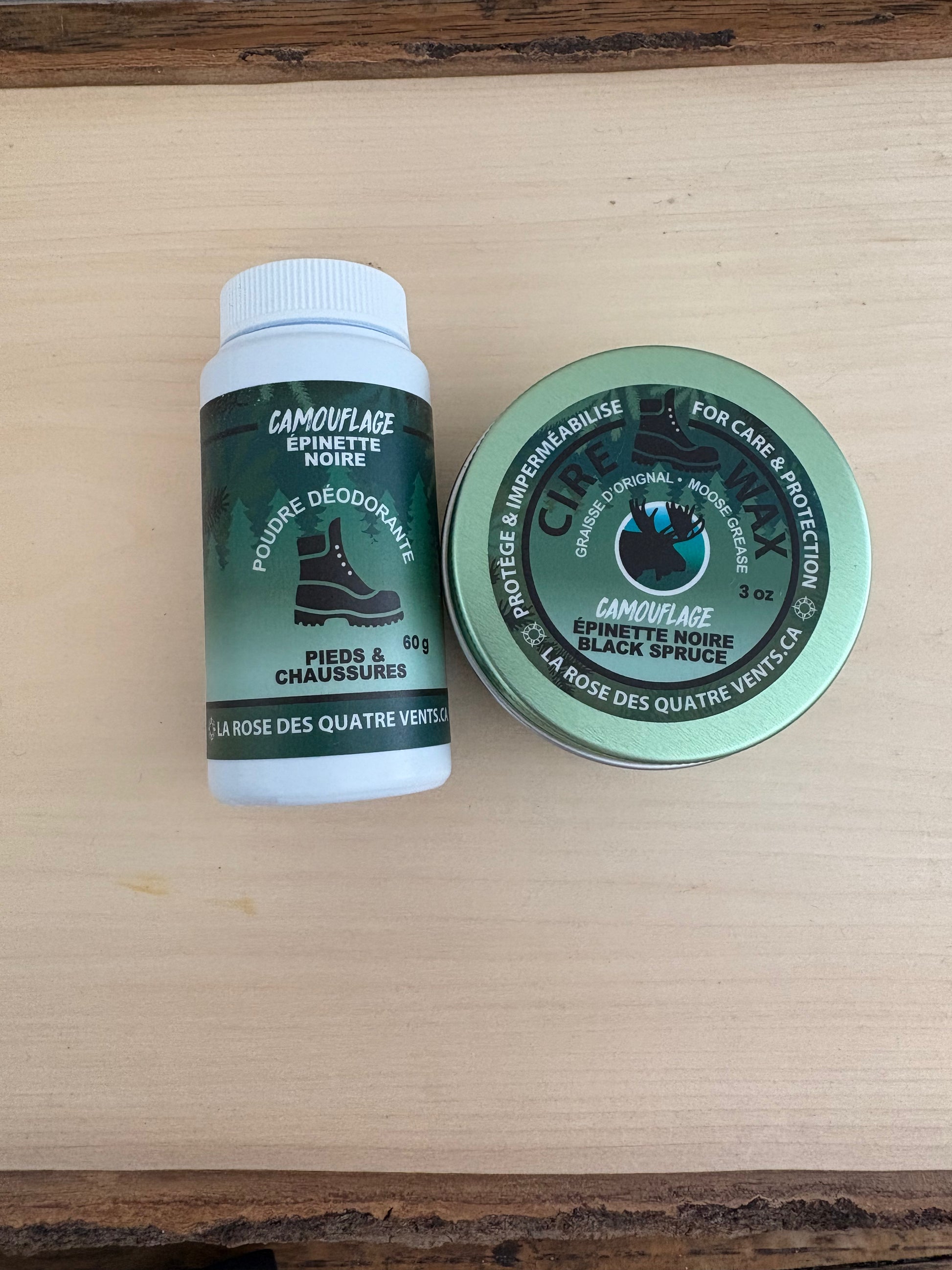 Ensemble de cire à chaussure GRAISSE ORIGNAL et poudre à pieds épinette noire